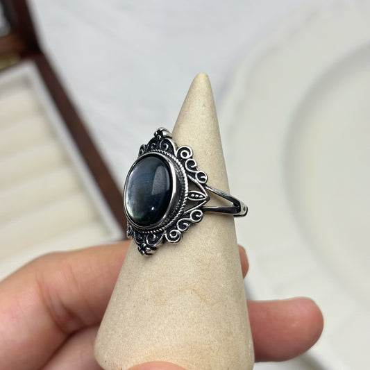 Black Mother of Pearl Ring – Vintage Oval Scroll Design