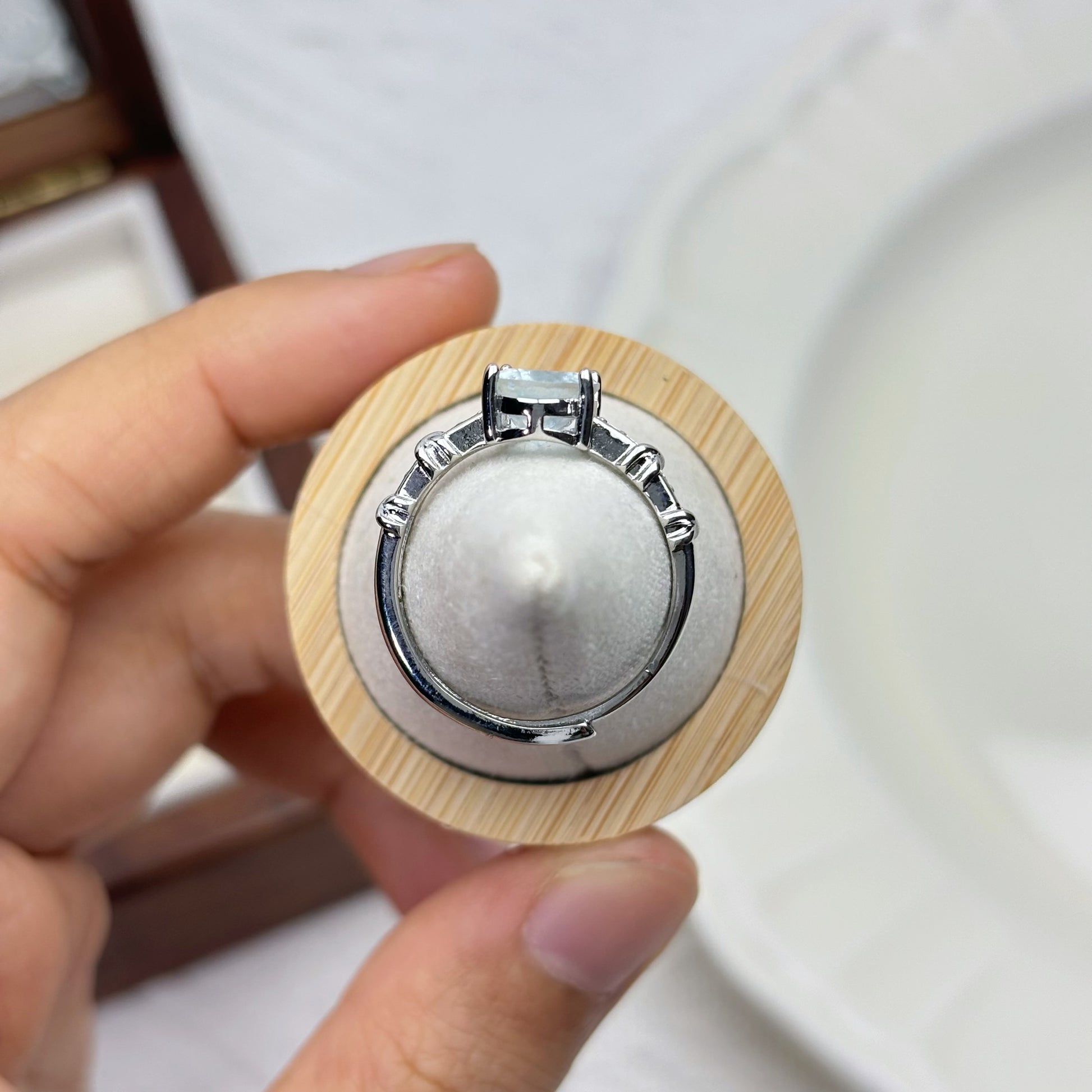 This timeless ring features a natural oval-cut blue topaz set in a silver-plated band with delicate crystal accents. Its size-adjustable design makes it both elegant and effortlessly wearable—perfect for everyday sophistication or special occasions.